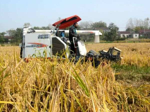 安徽省马鞍山市含山县仙踪镇骆集村北下自然村,金色的田野中,两台收割机正在收割水稻。“今年水稻收成不错,又是一个丰收年。”10月23日,含山县仙踪镇在文家庭农场负责人夏在文告诉笔者,今年农场的可以收获120万斤优质水稻。