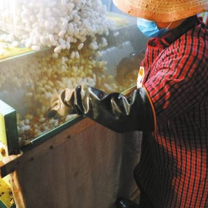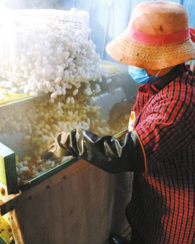 毕会召给记者算了一笔账:一斤蚕丝卖400元,一天产100多斤,就是4万多元。