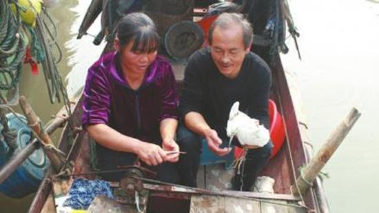 三个月前,这只因左腿受伤险些丧命的野生小白鹭,被当地渔夫李明友和妻子罗永琴拯救。当白鹭伤势好后,夫妻俩把它放归大自然,不料,小白鹭不舍离去,从几公里外飞回渔船,把李明友夫妻的渔船当做自己的家。