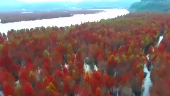 初冬时节,水杉树叶开始变红,湖北省恩施州利川市到处呈现出“满山尽披黄金甲”的壮丽景观,放眼望去,道路两旁、乡村田野、房前屋后都如飘荡着一片片的红云,分外动人。