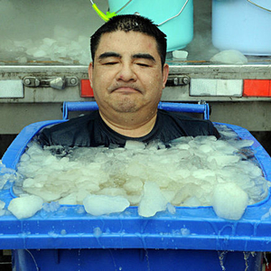 那些小冰块明显是经过专业冰制的,从视频上也能看到,有些冰块在倒下的过程中不仅碎掉,更有许多的冰屑冰渣。更有一点需要指出当时,标哥当时头上浇下的并非全是冰化的“纯冰水”,而是加了不少的常规水和冰块混合的。这种水温度并不是很低。而要把冰块全融化更需要时间,这对体格健壮有曾经受过很好训练的标哥来说并非难事。而就是这样,当标哥最后走出冰桶时,也是脸色苍白,嘴唇发青,可见其身体的抗击力也已经达到了极限。