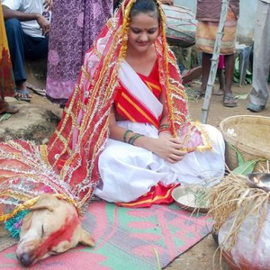 这场嫁狗婚礼搞得还很隆重,全村有70人参加,真像那么回事。新娘蒙达心里不乐意但父母令难违。蒙达说,与狗结婚不是什么新鲜事,这可以帮助她驱走厄运,而且村子里已经有几个女孩与狗举办过婚礼。按照村里“跳大神”人的说法,女孩嫁给狗,厄运就转嫁给狗了,人也就摆脱了厄运。女孩嫁狗成了当地一些村落的习俗,他们认为这样可以让人平安。按照规矩,新娘蒙达将抚养这个狗,过几个月后她可以找个可心的男人再把自己嫁出去。
