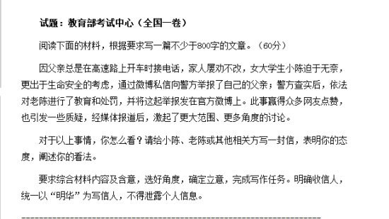 而这一切,与你的需要没有关系。作为一个曾一直努力想让父亲改掉抽烟习惯的我知道,作为女儿的你,要的只是父亲能改掉这个开车陋习,要的是父亲免于被这种陋习所伤害,要的是开车的父亲平平安安回到家中和你一起吃晚餐。从新闻看,你的目的已经达到,父亲老陈后来领悟到“觉得女儿确实说的很有道理,她是在对家人的生命负责,也是对家人爱的一种体现”。——父亲理解了你的良苦用心,读到了你的爱,那就足够了。