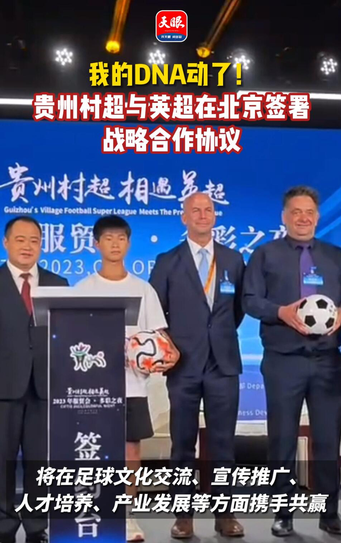 9月2日,贵州村超与英超签署战略合作协议,双方计划开展培训课程和内容互动,并考虑筹办社区足球友谊赛,这场草根足球运动与世界顶级足球赛事的联姻,令人瞩目。