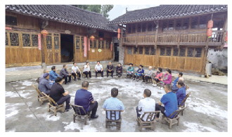 9月13日,湖南省花垣县司法局及石栏镇镇党委、镇政府工作人员到朋岩村村民黄祖兴家召开院坝会,为村里的“法律明白人”宣讲人民调解法及乡村振兴政策。 胡鹏举 摄