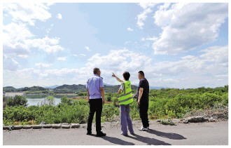 北京市密云水库综合执法大队将水库一级区划分为160个保水网格,组建了2150人的保水网格员队伍。图为6月20日,综合执法大队执法人员和网格员对水库进行巡查。
