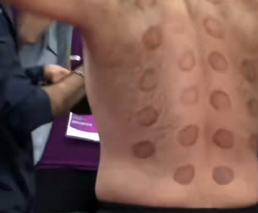 火罐疗法又叫拔罐疗法,是一种古老的中医治疗方式。原理是将罐内空气消耗以形成负压,把闭阻在身体内的寒、湿、瘀血等通过出痧的方式促进其排出体外。拔罐火到国外,泳界巨星菲尔普斯的“带货”功不可没——他在征战奥运会时,身上的火罐印记给观众留下深刻印象。之后许多国外运动员开始尝试拔火罐,本届杭州亚运会也不例外。