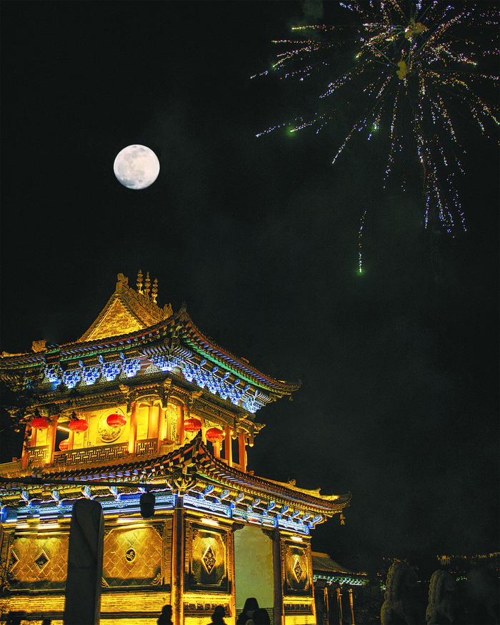 顺着主街往里走,老街旧巷、青砖灰瓦中装点着喜庆的红灯笼,处处洋溢着欢乐的节日气氛。拱海门、城隍庙、仁记商行……众多的人文景观和历史遗迹,向游人诉说着古城600年来的光阴故事。
