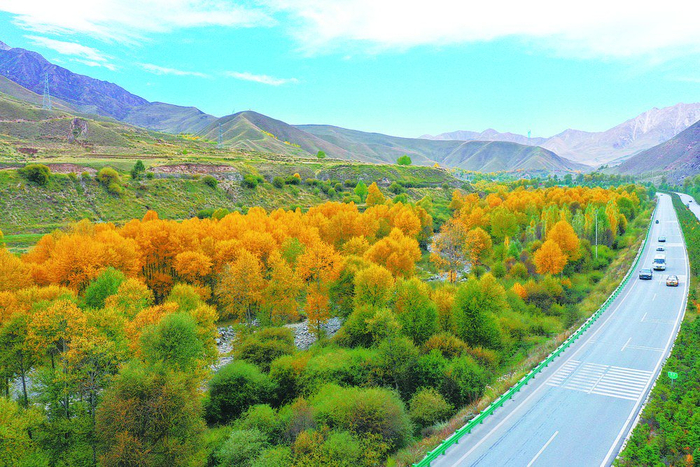 深秋,夏季的喧嚣与翠绿逐渐转换为秋日的宁静与金黄。正值中秋、国庆长假,海南藏族自治州贵德县尕让乡关加村江拉林场,片片深红与金黄交织,每一片树叶都绽放着独特的美。