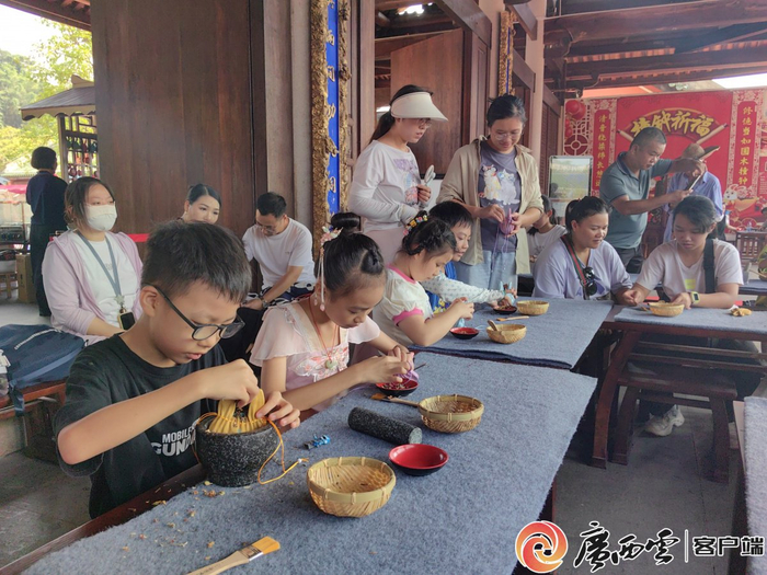 10月2日,小朋友们在南宁孔庙体验制作传统香囊。长假期间,孔庙开展百鼓庆生、舞龙舞狮表演、蹴鞠、投壶、抛绣球等丰富多彩的文化活动,丰富广大市民、游客的节日文化生活。广西日报-广西云客户端记者 徐天保 摄