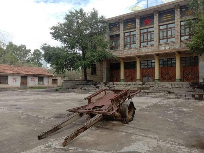 在莫河骆驼场的礼堂旁,是由20世纪60年代莫河骆驼场老会议室改造成的莫河骆驼场青藏驼队历史陈列馆,在陈列馆最显眼的地方,挂着第一面扛进拉萨的五星红旗(仿制品),这面一米五见方的红旗由多块红布拼接而成,不太规整的黄色五角星是用黄布剪成缝补上去的。莫河骆驼场青藏驼队历史陈列馆馆长张存虎介绍,这面国旗是解放军第一次开赴拉萨前,由战士和驼工们共同制作的。
