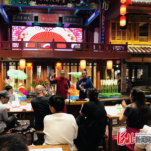 “打那以后,槐茂酱园的酱菜身价倍增,不管是南来赶考的,北去进京的,走亲访友的,买卖东西的,只要来到咱保定府,都要品尝这八宝太平菜……”记者循声望去,一位身穿蓝色旗袍的说书人,已站上古色古香的保定大舞台,声音高亢,底气十足。