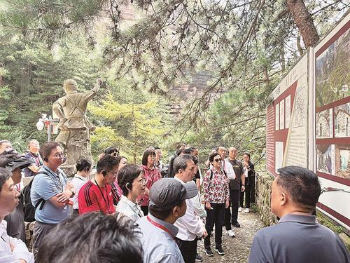委员们在黄崖洞保卫战板山防御工事遗址前参加现场教学