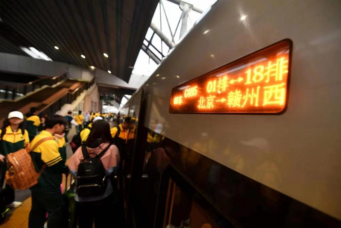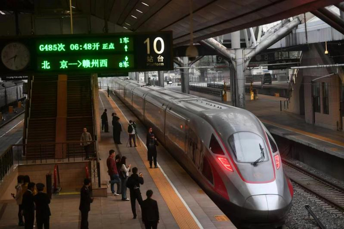 当天,担当京广高铁G485次列车值乘任务的是来自中国铁路北京局石家庄客运段高铁一队的乘务组。列车长刘学和他的乘务组一直担当G485次列车从北京西站去往赣州西站的值乘任务,他介绍,这一次从北京站始发后,列车终到赣州西的时间没有变化,仍然为当天傍晚的18:47分。刘学表示,列车开出后将经过北京站至北京西站的地下直径线,旅客会发现列车经过隧道时,手机会有7分钟左右的时间暂时没有信号,对于这种变化,我们也会提前在列车上对旅客进行提示。