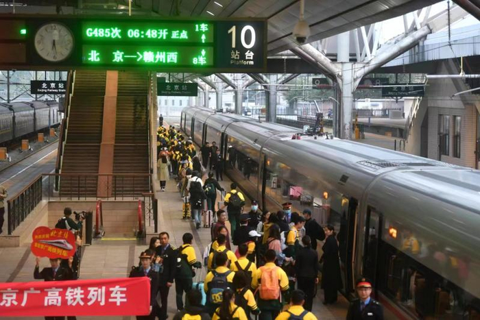 10月11日起,全国铁路调整第四季度列车运行图。作为距离北京市中心最近的火车站,北京站首次始发开行京广高铁列车。列车的开行为北京市区东部市民乘坐京广高铁提供便利,同时东北到京旅客南下京广也更加方便。首都核心圈与革命老区及沿途城市的交融交流更加紧密。