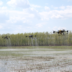 2023年5月,北大荒集团军川农场有限公司正使用植保无人机对刚刚插秧的地块喷施液态返青肥。新华社记者黄腾 摄