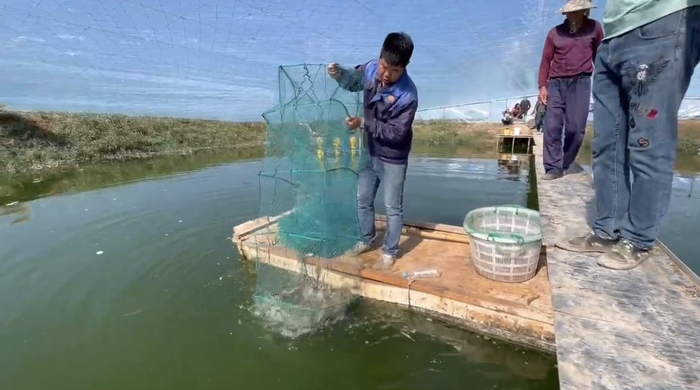 记者在养殖基地的大棚里看到,工作人员将捕虾网撒到池塘里,等待半个多小时后就能收网。只见一只只活蹦乱跳的对虾被倒入一个大筐里,对虾的个头很大,长有17公分左右。“今年的对虾长得不错,光大棚这一茬就有20万斤的产量。”曾传东说,这段时间正是对虾的销售季节,批发价为每斤30元,销售将一直持续到11月底结束。