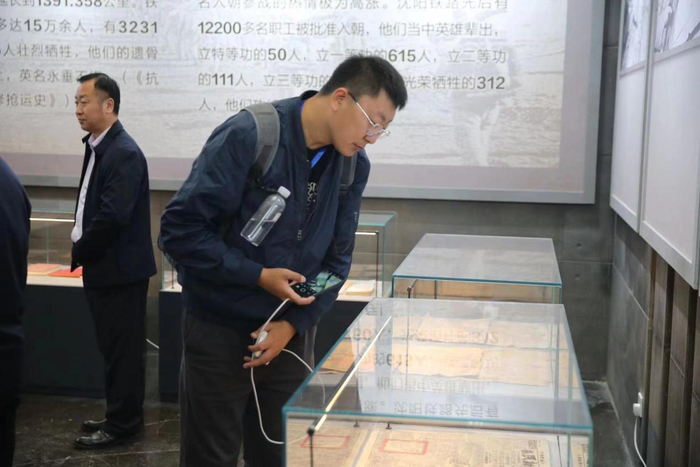 铁路抗美援朝博物馆,主要围绕抗美援朝战争中铁路运输、铁路抢修展开,全景式展现了重要历史性事件、英雄人物和感人事迹。在博物馆,采访团一行仔细参观着一件件珍贵的照片和实物,聆听讲解员动情讲述,深受感动和震憾。