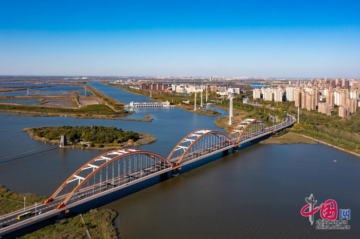 彩虹桥位于永定新河与蓟运河汇合处,是连接滨海新区南北的重要通道,1998年10月正式竣工通车。该桥曾获天津市科技进步奖、建设部和天津市优秀设计奖。中国网记者 郑亮摄