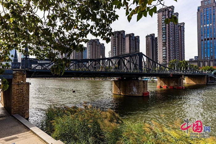 金汤桥位于天津市建国道西端与水阁大街之间的海河上,是天津市现存最早建造的大型铁桥之一,桥长76.4米,总宽10.5米,面积802.2平米。该桥是国内仅存的三跨平转式开启钢结构桥之一。中国网记者 郑亮摄