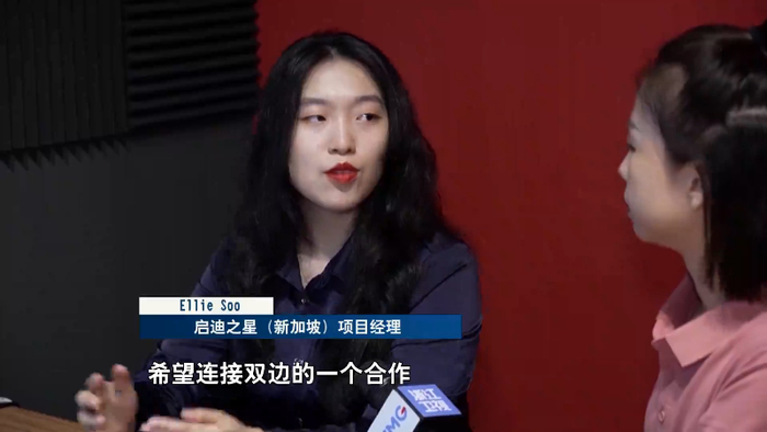 启迪之星(新加坡)项目经理Ellie Soo:希望连接双边的一个合作,把浙江的企业都带来新加坡,让他们去享有东南亚市场的一个平台,然后也想要把新加坡的企业都带到浙江,去享受一下浙江的营商环境等等。