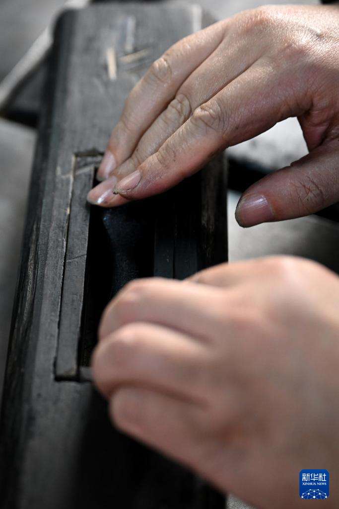 10月24日,在安徽省黄山市歙县老胡开文墨业有限公司,周健将揉搓好的墨条放入墨模。