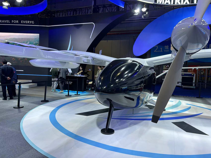 该参展商称,这架型号为Matrix 1的eVTOL,2023年10月刚在上海完成首飞,此次参展进博会是全球首秀,首次出现在世界公众面前。