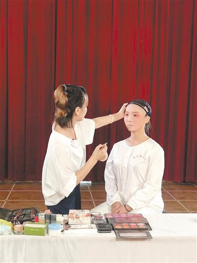 吴亦锦给琼剧演员设计造型。