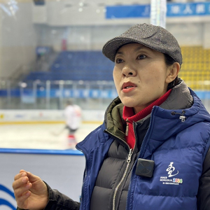 内蒙古冰上运动训练中心副主任塔娜介绍相关情况。人民网记者 金洪花摄