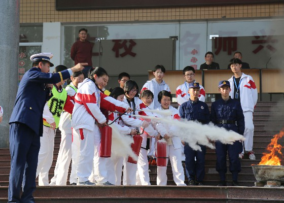 石门一中举行“消防进校园”演练活动。
