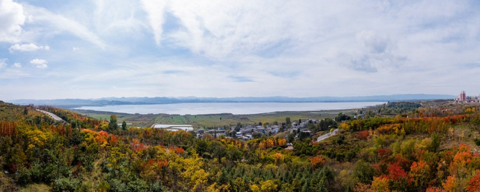 草海湖面如镜,候鸟飞舞。而在不远处的草海北坡生态公园,层林尽染,拍照打卡、休闲游玩的市民熙熙攘攘,威宁县城和草海湖构成了一幅“绿树青山、人和鸟欢”的优美画卷。