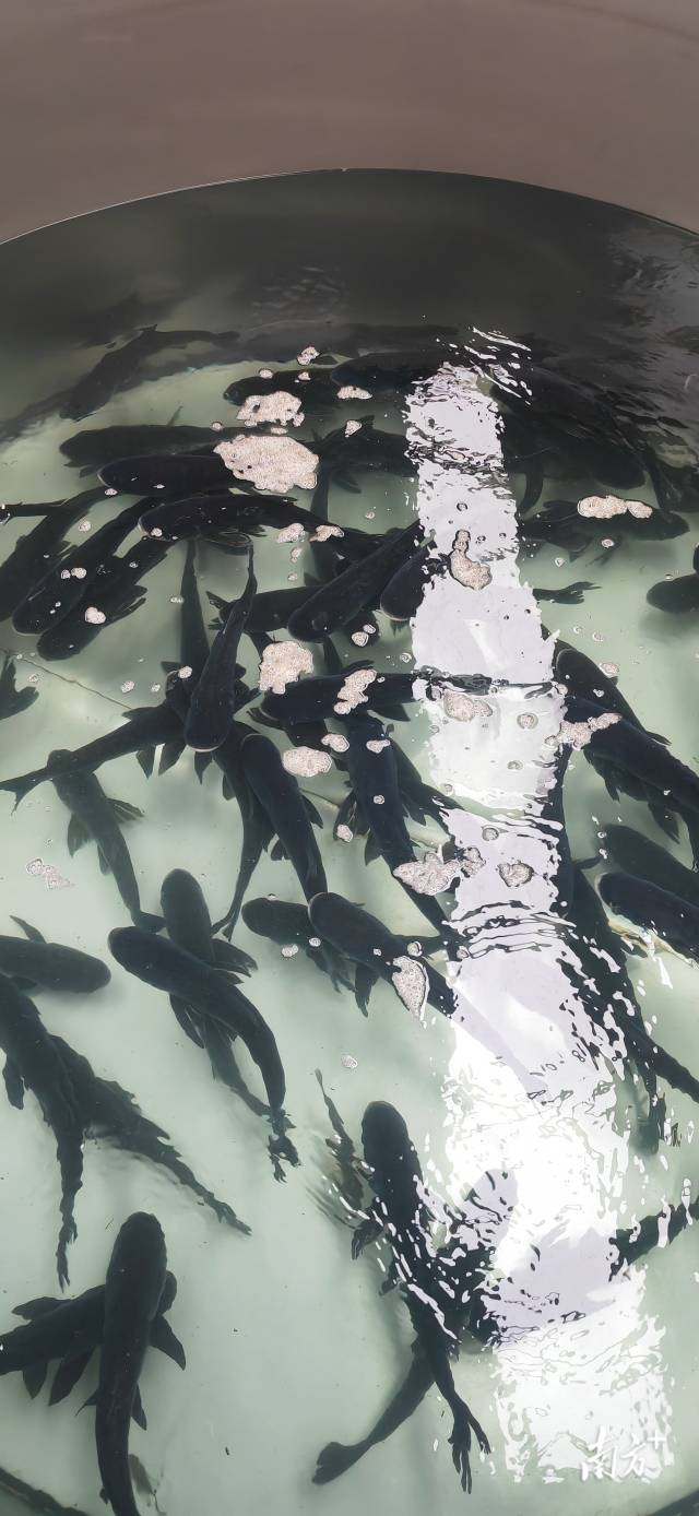 立冬至,天渐凉,鱼儿欢,农民乐。走进韶关乳源必背镇半坑村仙人泉瘦身鱼养殖基地,一个个“银色水池”格外显眼,一条条鱼儿在清澈的山泉水池中追逐嬉戏。当前正值瘦身鱼捕捞期,村民们正忙着捕捞、分拣、称重、装车……整个过程一气呵成,一幅鱼跃人欢的“丰”景图徐徐展开。