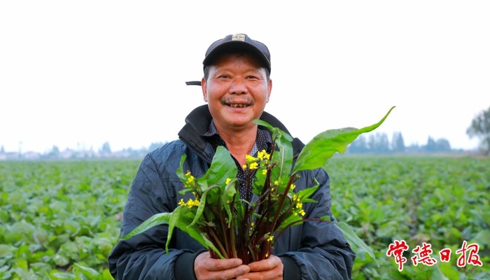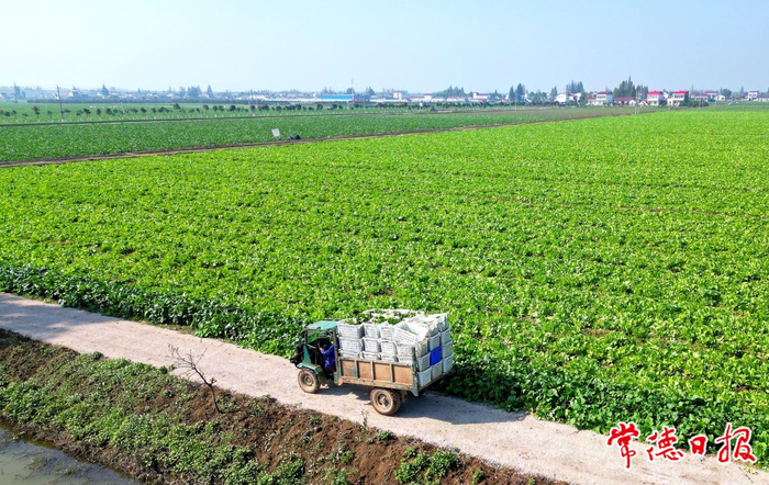 初冬时节,行走在安乡县安康乡、三岔河镇、大鲸港镇等乡镇,一片片绿油油的菜薹在阳光的照射下,闪着耀眼的光芒。工人们在田里采收、运输菜薹,一车车菜薹带着泥土的芬芳被运往全国各地。