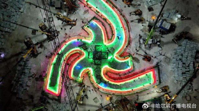 目前,第25届哈尔滨冰雪大世界超级冰滑梯在建设的同时,其它的冰雪景观也开始建设,园区主塔钢结构搭建已完成,进入底部造型的冰体砌筑阶段,整体施工进度完成30%。第25届哈尔滨冰雪大世界将带你体验不一样的冰滑梯感受,让我们共同期待!