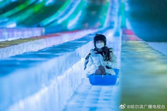 哈尔滨冰雪大世界超级冰滑梯全面升级 滑道增至14条!