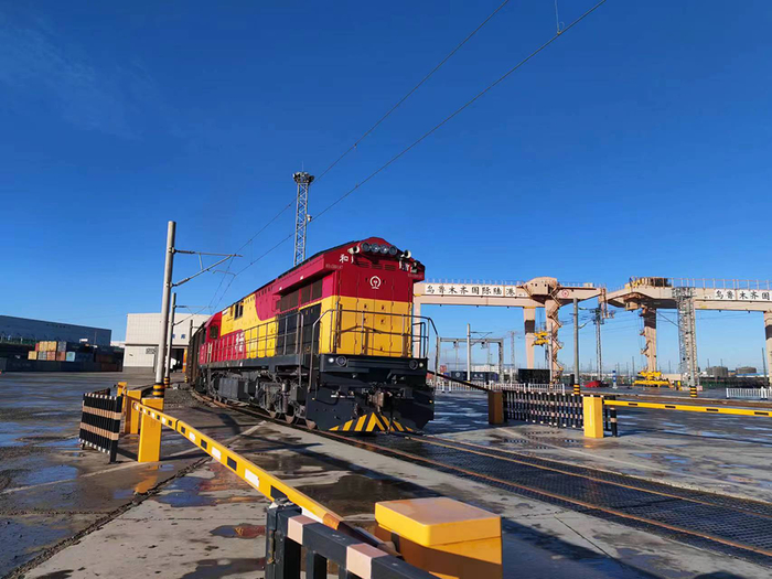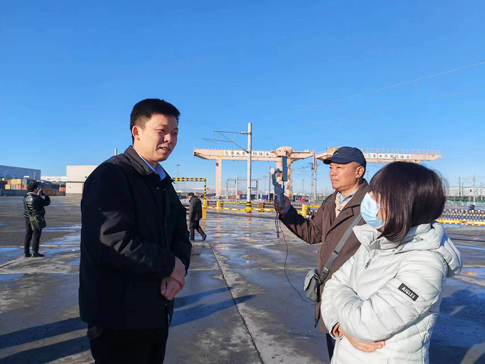 当日上午,“幸福就在这里”参访团还来到同样位于乌鲁木齐经开区(头屯河区)的乌鲁木齐国际陆港区。这是丝绸之路经济带核心区建设的标志性工程。在这里,一辆运输着百货、五金配件、瓷砖等物品的班列正在驶出。