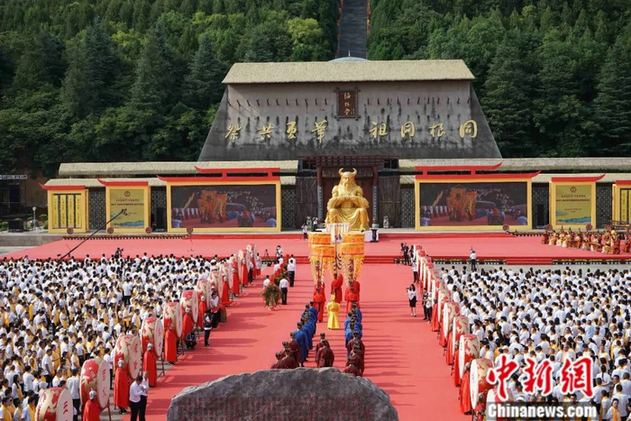 2023年8月,癸卯年两岸同胞共祭始祖炎帝典礼在陕西宝鸡炎帝陵举行,陕台两地各界民众代表共同拜谒华夏人文始祖炎帝。党田野 摄