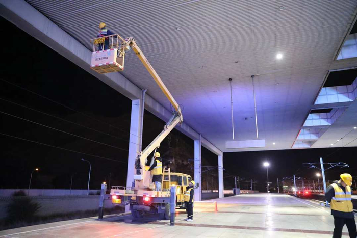 凌晨2时许,随着升降机的缓缓降落,拉萨站风雨棚LED照明灯的更换施工作业全部结束,更换后的站台如同白昼,照亮了旅客回家的“夜路”。(赵风斌 拉巴次仁)