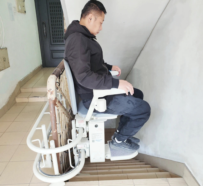 刷卡后,坐上装在楼梯扶手上的座椅,按住上行按钮,老人就可以毫不费力地上楼了。在西城陶然亭街道陶然湖景小区M单元,楼梯旁加装的“爬楼代步器”投入使用后,解决了腿脚不便的老人上下楼的难题。
