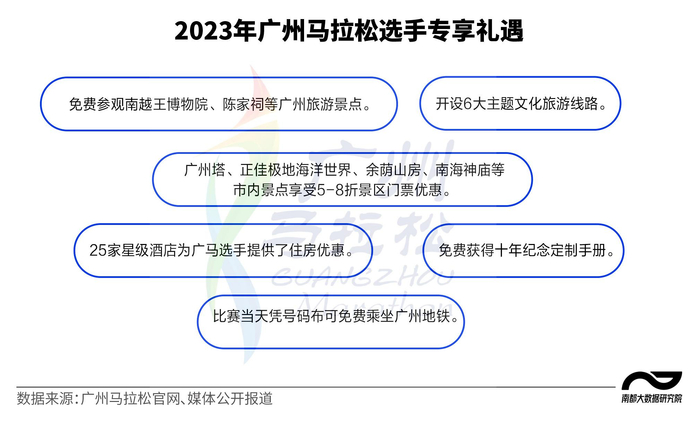 “跑完一场马,爱上一座城”。在深入推进全域、精品旅游发展过程中,结合旅游资源优势,打造特色鲜明的体育旅游品牌,正逐渐成为国内多个省市文旅融合发展的一大亮点,广州也不例外。为了方便参赛者在跑广马之余还能畅玩羊城,广马组委会已连续多届为选手提供了专属礼包。