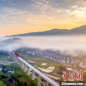 资料图:安徽高铁黄金旅游线路——池黄高铁穿云破雾风景如画。李和平 摄