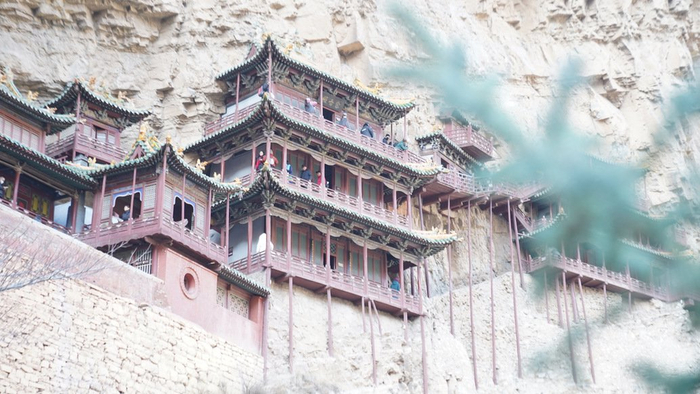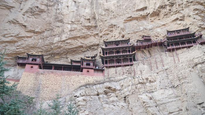 悬空寺修建在恒山金龙峡西侧翠屏峰的悬崖峭壁间,近看大有凌空欲飞之势。悬空寺距地面高约50米,整个寺院上载危崖、下临深谷,全寺均为木质框架式结构,半插横梁为基,巧借岩石暗托,梁柱上下一体,廊栏左右相连。全寺共有殿阁40间,佛像80多尊。虽然整个寺院面积不大,但设计精巧,内涵深奥,一直以来都是众多学者观瞻求索的热门之地。唐代诗人李白在观赏悬空寺后,在寺庙下方岩石留下“壮观”二字;明代旅行家徐霞客游览悬空寺后,盛赞其为“天下巨观”。