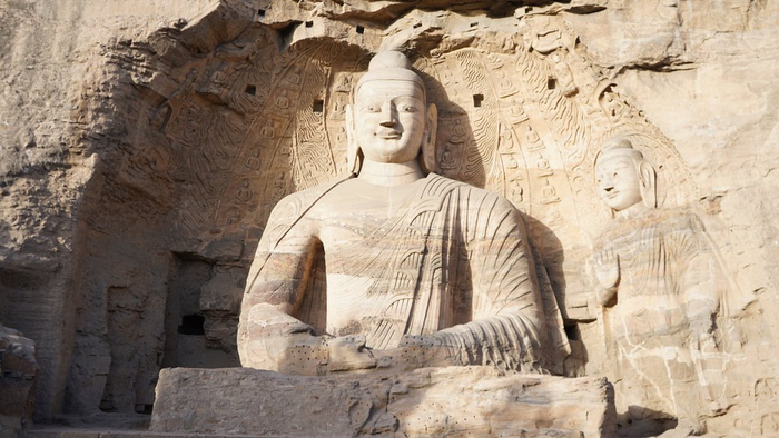 云冈石窟位于山西省大同市西郊,是中国四大石窟之一,始建于北魏,距今已有1500多年的历史。作为中国规模最大的古代石窟群之一,云冈石窟不仅有中国传统风格,还融合了古印度和西域的艺术元素,人物塑像面容饱满、高鼻深目,有着明显的西域少数民族面部特征,是世界佛教石窟雕刻艺术的巅峰之作。