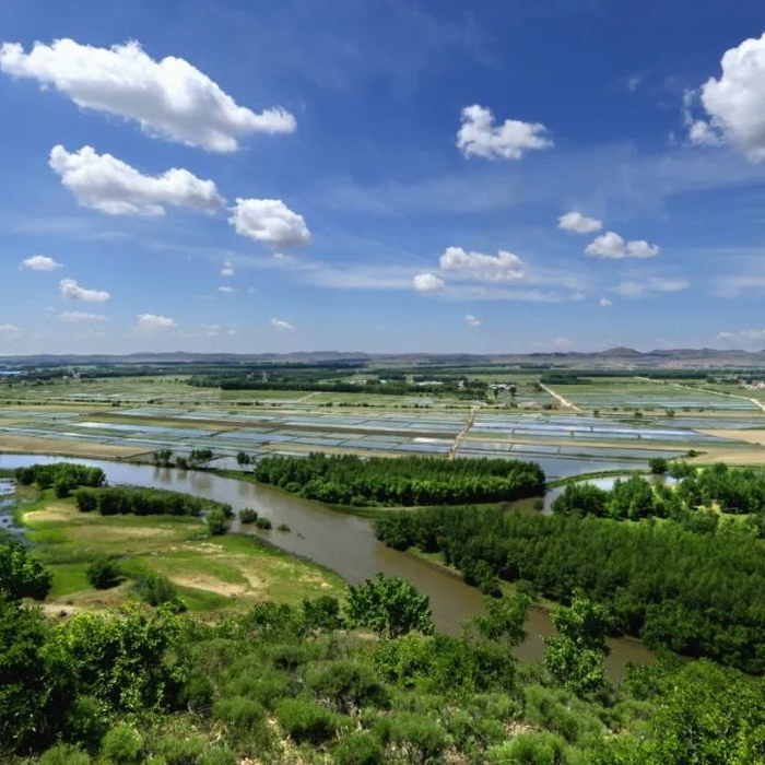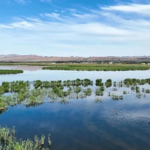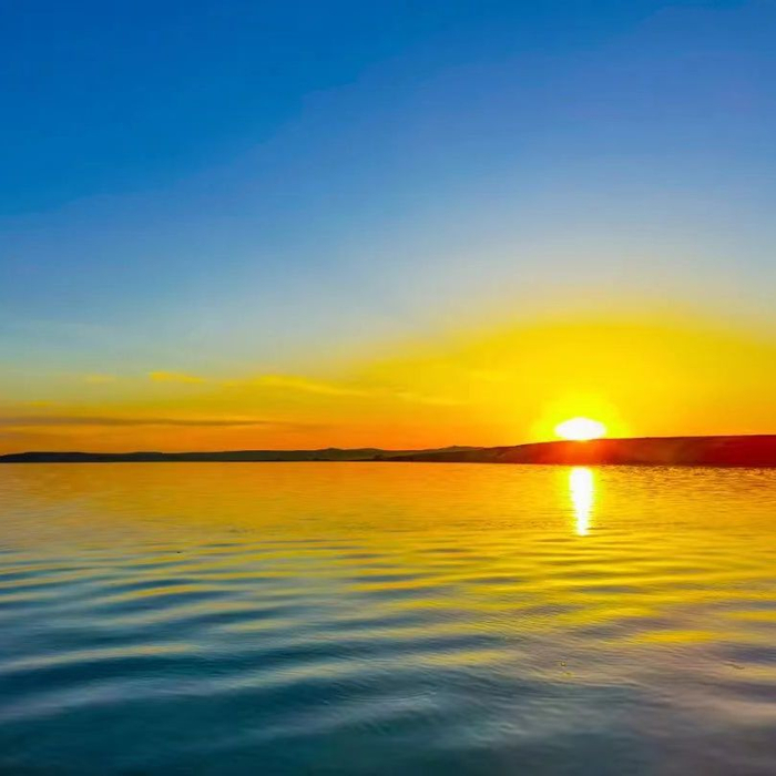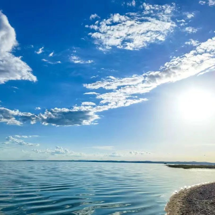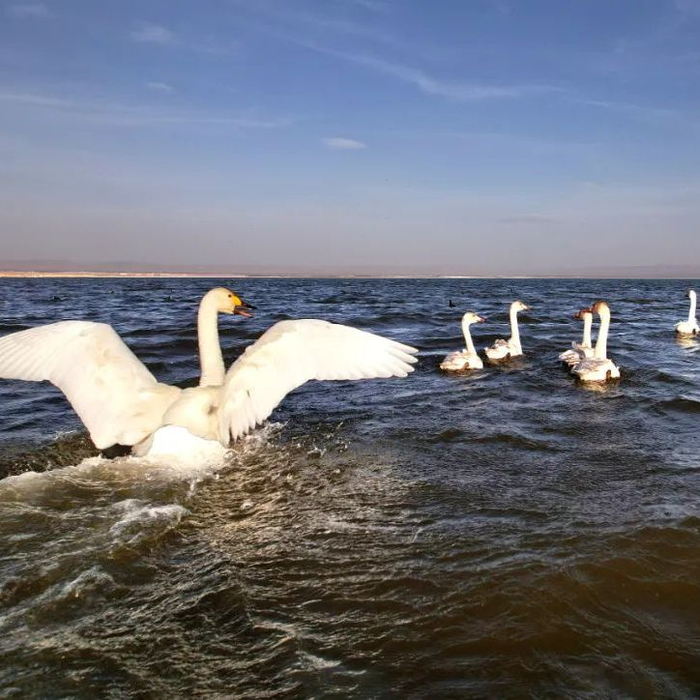 乌梁素海芦苇摇曳、百鸟翔集、一碧万顷、斟满湛蓝。