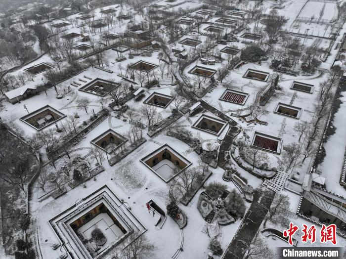 12月12日,在河南省三门峡市陕州区,一场大雪让地坑院披上了一层洁白的银装,空中俯瞰犹如一幅水墨画卷。地坑院作为一种古老而神奇的民居样式,被称为中国北方“地下四合院”,素有“见树不见村,进村不见房,入户不见门,闻声不见人”之称。