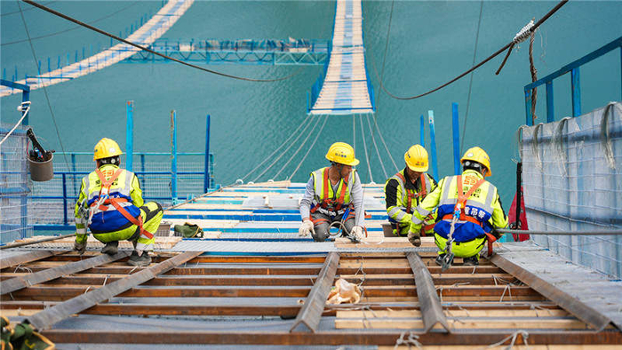 本次首根股索成功牵引架设,标志着四川卡哈洛金沙江大桥建设全部转入上部结构施工环节。按照施工计划,大桥主缆预计12月底全部架设完成,随即转入后期紧缆、索夹及吊索安装、钢桁梁吊装施工等工作。