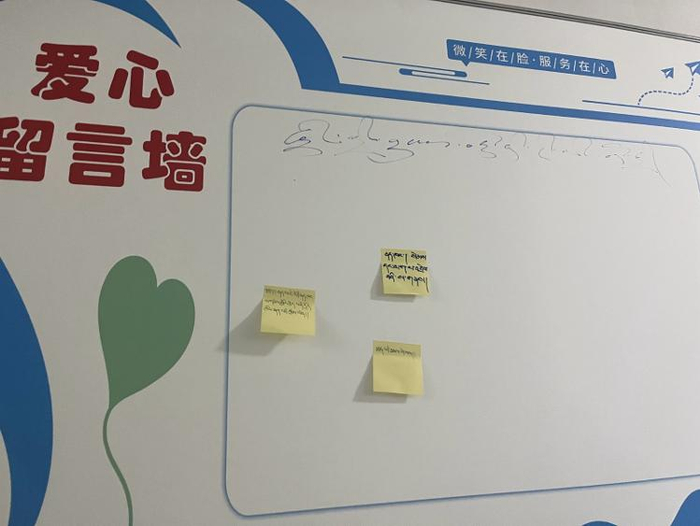 在小屋长廊的留言板上,有几个写着藏文的便利贴,那是之前住过爱心小屋的患者家属们写下的,医院的当地医生给大家翻译,“第一个是爱心小屋让我们大家感到很温暖的意思,第二个贴纸的意思是,我们会珍惜爱心小屋病房里的物品,第三个上面写的‘医者仁心’……”这位当地藏族医生回头跟赵建业说,赵院长,我们的爱心小屋看来真的帮助到了他们。