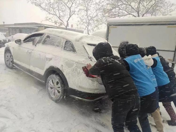 火锅店员自发给环卫工人送去热水和自制汤圆;威海5人暴雪中自发救援200多辆车,还给每一位外地司机准备盒饭。