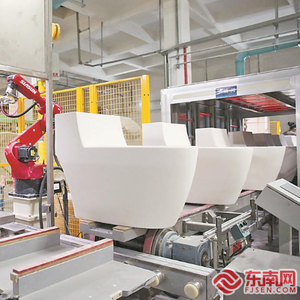 日前,记者来到位于南安的九牧5G智能马桶黑灯工厂。记者看到工厂里不用照明,流水线由机器人进行操作,每个操作台的产品装满后就向搬运机器人发出信息,机器人收到信号,来到操作台将产品搬至5G+智能立库。在人机装配车间,记者看到工人、生产机器人、搬运机器人配合默契。