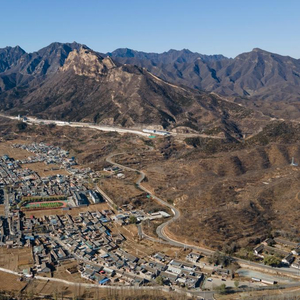 这是古北口长城卧虎山段脚下的古北口镇河西村,被评为“中国传统村落”(11月14日摄,无人机照片)。新华社记者陈钟昊 摄